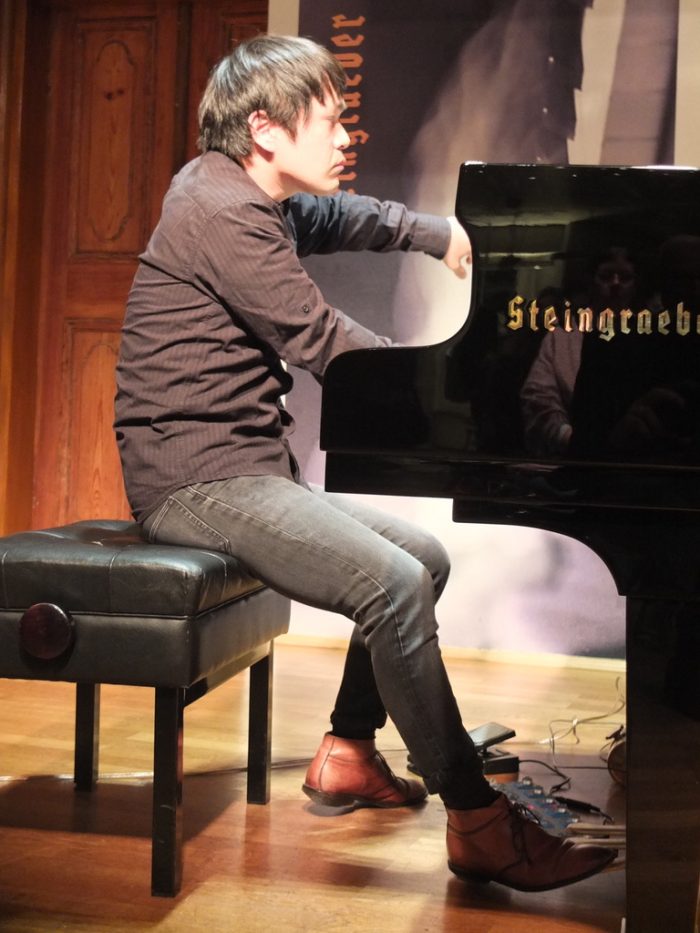 Danach begeisterte Shingo Inao den ausverkaufen Saal mit seiner Improvisationstechnik über die – für Musikkenner klar erkennbaren – Rheingold-Motive aus Richard Wagners Oper. Auch durch die körperlichen Bewegungen des Pianisten entsteht eine Atmosphäre, die selbst Klassiker wie Richard Wagners Rheingold in eine zeitgenössische, gänzlich entstaubte, fließende Atmosphäre transformiert. Getreu dem Wagner-Motto: „Kinder, wagt Neues”.